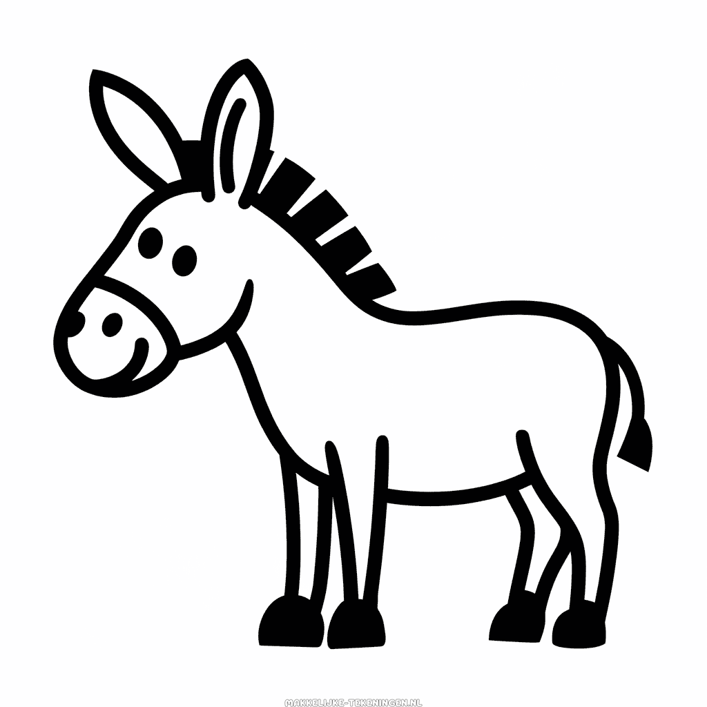 Eenvoudige tekening van Eenvoudige Ezel om gratis te printen, een schattig ezeltje dat perfect is voor jonge kunstenaars en beginners om hun eerste tekenavonturen mee te beleven. Eenvoudig kleurplaatje om over te trekken of in te kleuren voor kinderen. Hoge kwaliteit sjabloon, perfect voor zwart-wit PDF-print in A4-formaat.
