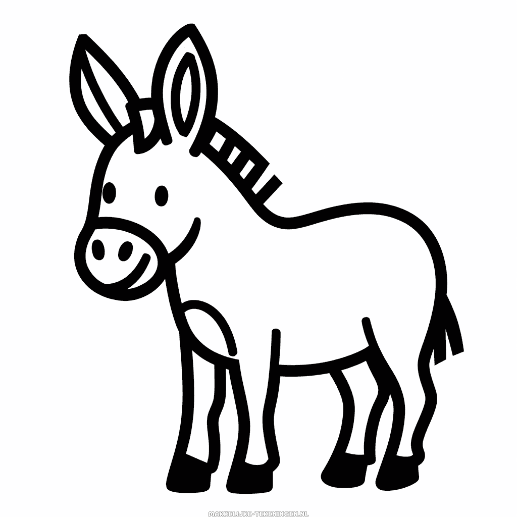 Eenvoudige tekening van Ezel voor peuter om gratis te printen, deze vriendelijke ezel is perfect voor jonge kinderen om hun eerste kleurplaatervaring mee te beginnen. Eenvoudig kleurplaatje om over te trekken of in te kleuren voor kinderen. Hoge kwaliteit sjabloon, perfect voor zwart-wit PDF-print in A4-formaat.
