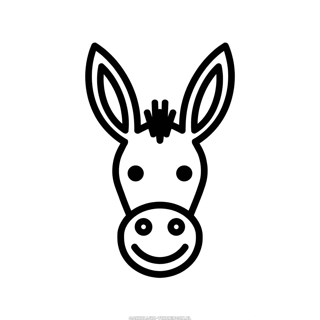 Eenvoudige tekening van Ezelsgezicht om gratis te printen, een aandoenlijk ezelsgezicht dat perfect is voor beginnende tekenaars. Eenvoudig kleurplaatje om over te trekken of in te kleuren voor kinderen. Hoge kwaliteit sjabloon, perfect voor zwart-wit PDF-print in A4-formaat.