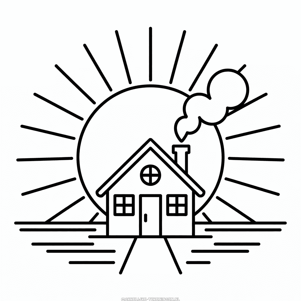 Eenvoudige tekening van Herfstochtend om gratis te printen, een sfeervol plaatje dat de rustige schoonheid en warme kleuren van een herfstige ochtend uitstraalt. Eenvoudig kleurplaatje om over te trekken of in te kleuren voor kinderen. Hoge kwaliteit sjabloon, perfect voor zwart-wit PDF-print in A4-formaat.