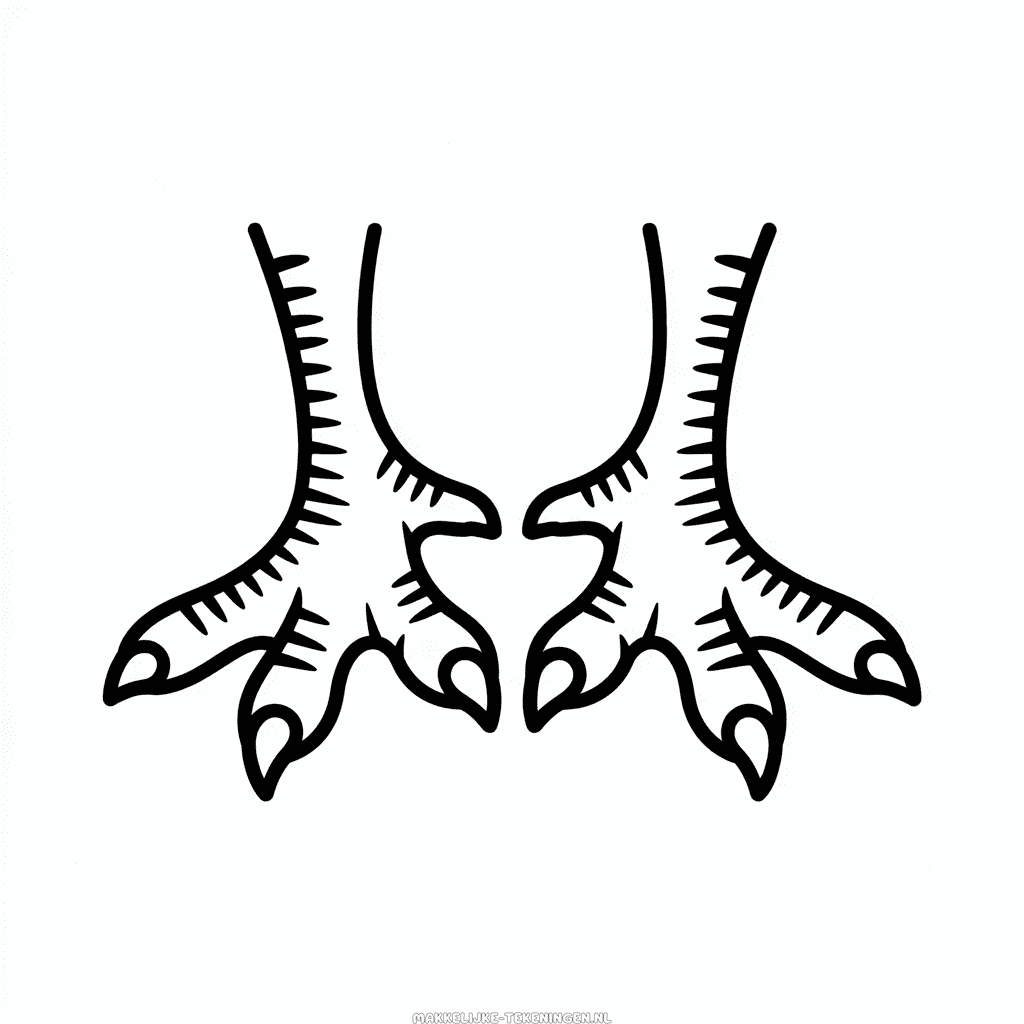 Eenvoudige tekening van Kalkoen poten om gratis te printen, een schattige afbeelding van een kalkoen die zijn poten toont voor een leuk en leerzaam tekenavontuur. Eenvoudig kleurplaatje om over te trekken of in te kleuren voor kinderen. Hoge kwaliteit sjabloon, perfect voor zwart-wit PDF-print in A4-formaat.