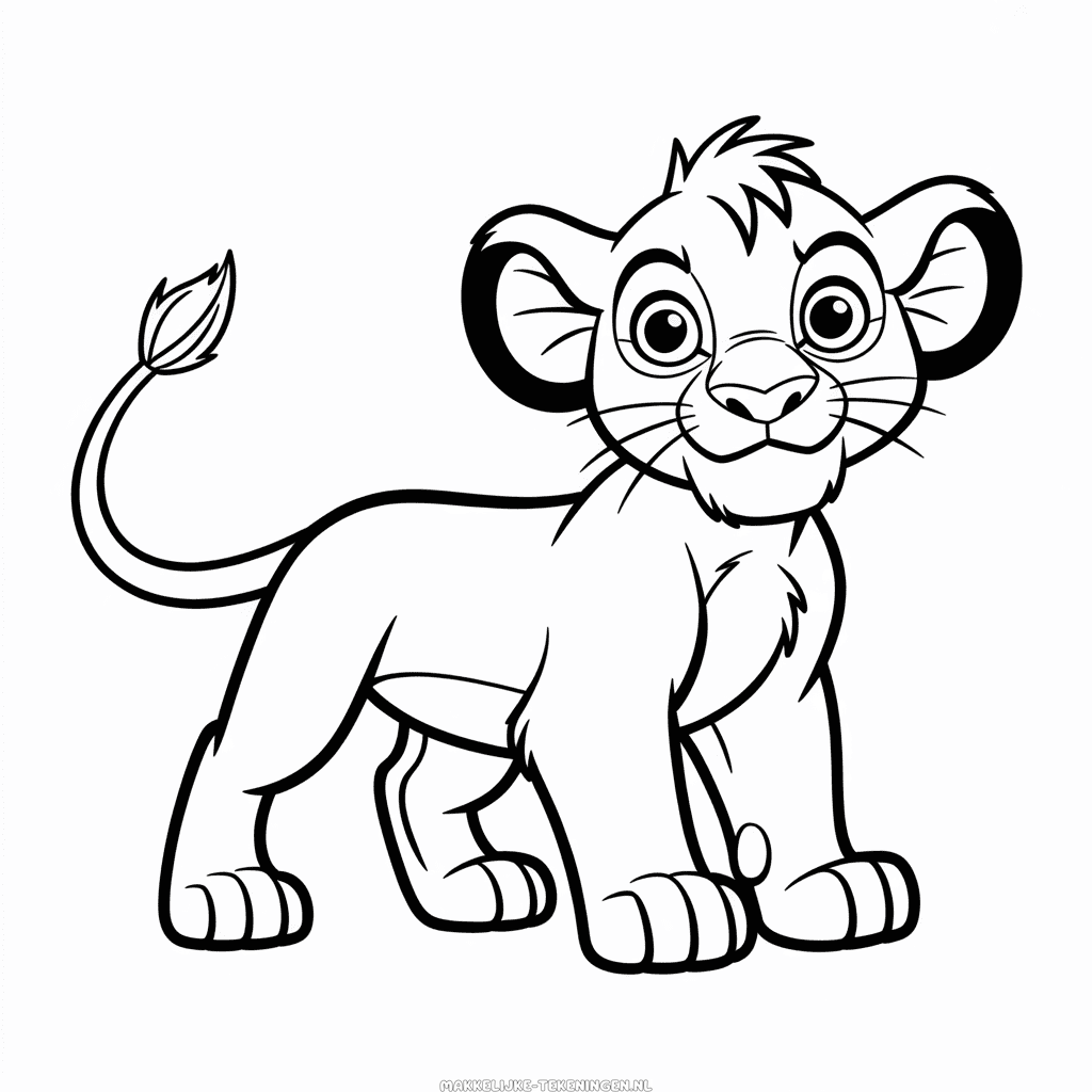 Eenvoudige tekening van Originele Leeuwenkoning om gratis te printen, deze afbeelding toont de iconische koning van de savanne in een prachtige, kindvriendelijke stijl. Eenvoudig kleurplaatje om over te trekken of in te kleuren voor kinderen. Hoge kwaliteit sjabloon, perfect voor zwart-wit PDF-print in A4-formaat.